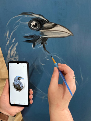 Katie came and painted a raven on the newspaper box – she painted one on the other side last year. Me, I just shlepped books around in an attempt to get them in order for the Alaska State Fair.