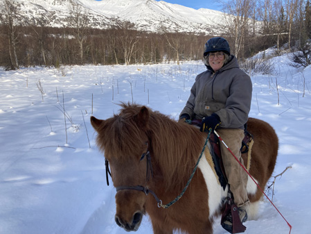 I was able to let go of proposal think for a bit – we took advantage of the sunny day and higher temperatures and went for a ride. The trails were a little punchy and so were the ponies. Tyra and Hrimmi didn’t want to do yet another slog through the calf deep snow. They are not packing down the trail, rather they are continuing to step in their own hoof steps. Hrimmi thinks that there being no grass on the trail that she should be compensated with treats.
