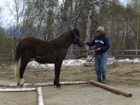 I first tried using a butt rope and tapping on his feet with a wand. No go. And Victoria repeatedly led Andi away from his friend. I then had an idea, which we acted upon. This was to toss a handful of carrots on the trailer floor. After a bit, Andi leapt in. I slammed the door shut behind him, opening it just a bit so Victoria could get out. Of course, this was the right thing to do-his lowering his head and eating the food activated his limbic system. Why more people don’t do this is beyond me. Plus we were going with the very real premise that Icelandic horses are food obsessed.