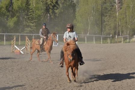 We next went over some low cross jumps, again following one another. From the previous lesson, I recalled – hold onto the mane because this is why God gave them to us. Then later I followed Vickie and Hunar over jumps. This was extremely helpful, for Vickie provided me with near-instantaneous commentary. And as importantly, Raudi saw what she was supposed to do.