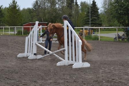 Rosie likes the fact that there are other horses in the arena with us, and also that there are obstacles. Both are a plus as far as group lessons go.