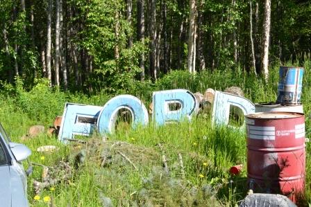 We first stopped at what we thought was THE yard sale, but it turned out to be ANOTHER yard sale. This became apparent as we pulled in the driveway. There were a lot a car parts for sale. This wasn’t what we were looking for, so we beat a hasty retreat. However, I did get a good photo of some large vehicle letters, ones that spelled out the word F-0-R-D.