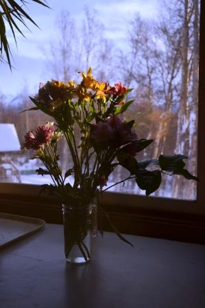 Prior to visiting Dough, we went to the Palmer Art Walk, a yearly event in which area businesses feature local art. We went because we like to support the local art community. There, we talked with other obsessed individuals. This included the owner of Coy Bridge Farm, which is located between Sutton and Chickaloon. There were, on the table in front of her, dozens of bars of goat milk soap. I began what became a very lengthy conversation by asking her if she had goats. This was like turning on a water spigot. She began talking about her now 24 goat herd, and once in a while (in reference to specific goats) showing us pictures of them. Some of her goats had hard udders, some had had difficulty calving, some lived to die old, and well, on and on it went. I, who began to tire of being in one place repeatedly, went behind her table to take a closer look at the goat in question. CAE and CL, were the main topics of this near one-way conversation. Both are bad goat diseases, and this is about all I can tell you. We extracted ourselves from this one way conversation by buying three bars of soap. Otherwise, we would not have been able to make a quick getaway. . . .