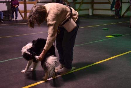 The numbers in the previous foundation class dwindled over the six week session This has not been so of elementary school, which has been a step up. The handlers in this class know more about how to put positive reinforcement theory to work – and consequently, their dogs are more attuned to them than were the dogs in the foundation class. There is little barking, and little pulling and straining on the leash to get at the other dogs.