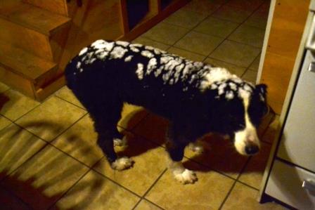 There was, speaking of Ryder, a huge breakthrough. This was that in coming to the base of Jim’s trail, she caught sight of a passing car. She went to chase it. I called her name, and she came running back. High praise and good treats were her reward. This was huge, because coming back when called when something is moving goes against a border collie’s instincts.