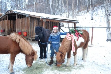 I got the online December course. Today I went outside and began gathering up my obstacles. I then worked Raudi, Hrimmi, and Tinni. I had a wonderful time and I think that the horses did too. The obstacles themselves included a tarp, five cones (substituted red and green buckets) a wood square filled with water bottles, a sack filled with hay, and a festive hat. Those competing are judged on how well they go over, around, above, and beneath these things.