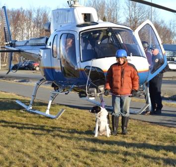 Once the pair arrived, we walked up to the Murphy Road trailhead. We first worked Jim’s dog Yukon, a rangy smooth collie mix. Yukon is being trained to do air scent, so he searches out a wide area off-lead. If he locates someone, he returns to the owner, and either by barking or pulling on a tug line attached to the belt, he lets the handler know the person has been found. Then, after the handler says “show me,” the dog takes them to the person. This is exactly what Yukon did. After, we all played with him for some time. Playing being his reward.