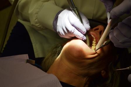 The dentist first did the filling work, starting by working on two cavities in my upper left side jaw. I first was given a shot of Novocain. She put some kind of clamp thing around one tooth prior to drilling. I raised my hand because I felt some pain. She gave me a second shot, then resumed drilling. She drilled on two teeth, then filled them.