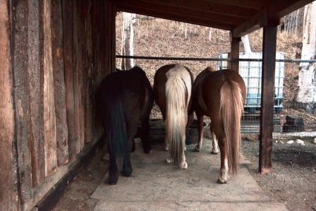 T: Enough of this nonsense girls. There’s a whole pile of hay by the fence line. Best we all eat what’s over there. Otherwise, we’ll starve to death.