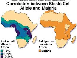 The red blood cells then become crescent-shaped (hence the term sickle cell) when they unload oxygen molecules or when the oxygen content of the blood is lower than normal. The deformed erythrocytes rupture and dam up in small blood vessels, interfering with oxygen delivery. This here is the very important physiological connection -- sickling reduces the malaria parasite’s ability to survive and enhances macrophages’ ability to destroy infected RBCs and the parasites they contain. This here is the physiological connection.