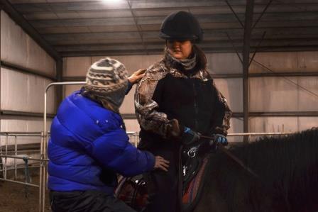 Alaska winters are cold, and our unheated arenas even colder, so staying warm while instructing has required that I wear my Refrigerware suit, a wool hat, and gloves, and of course, warm boots. Admittedly, I’ve often wished that I was out on the trail, where because the sun shines brightly, there is the illusion of heat.