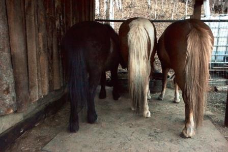So, no lessons today. The time that would have been spent working with riders was instead spent studying anatomy and physiology. It is now (as I write this) 7:34 p.m. Just got dark. We did get the horses out onto the trail today – it was a short but fairly good outing, though Tinni did get away from me when I was ponying him and ran part way back home. It was sunny out, in the 40s. I turned my head to the side and felt the heat of the sun warm up my cheek. This and lots of loose horse hair means that spring is on its way.