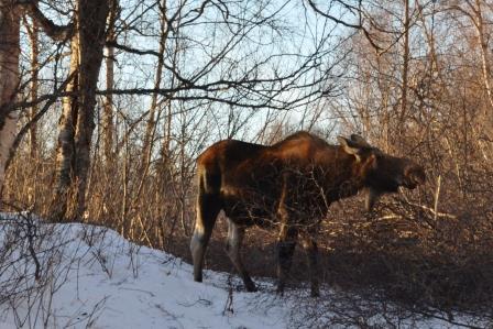 Pete cut up the trunk of the tree with the chainsaw, and I hauled out more wood on the sled. We will pile it up in our woodshed and use it next year. I’m not a big one for cutting down trees, nor do I enjoy altering moose migratory pathways. I hope that we don’t have to put fencing up because this will most surely change their pathways. Not a good thing because this means that they will have to expend more energy to get from point A to Point B. The arena will be in a sheltered grove, so fencing might not be necessary.