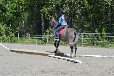 | horse cross a bridge? Will your horse go under an overhanging? Will your horse walk through strange stuff? In doing this I drew upon Vanessa Bee’s Over, Under, Through: Obstacles for Horses book. Corresponding obstacles thus included (among others) a bridge, noodles held aloft by two on each side of the rider, and a scary corner.