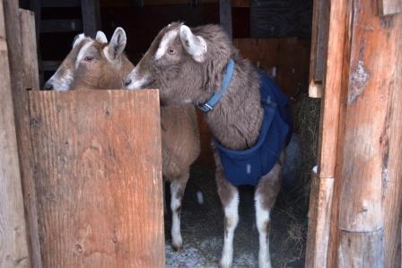 When I got home Sunday he was lying in the goat house, in the sphynx position, was alert. He ate some packer pellets, and took salt and bicarbonate of soda out of my hand. This morning he was in the goat house outside the shed. When I went outside and did the chores (first chore, to check on him) he was standing next to Ranger; a good sign, indeed.
