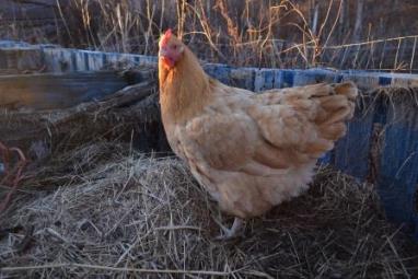 I peer into the roost box. Freebird 1.0 and 2.0 ruffle feathers, squawk.