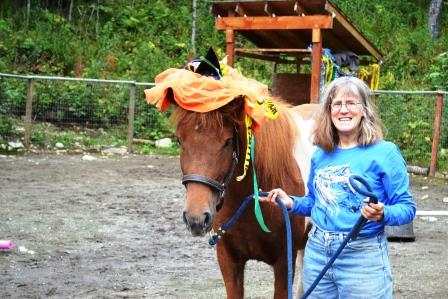 Yesterday I went for a long ride on Raudi, so I did not ride her today although she seemed to me to be just fine. Instead, I rode Tinni, Pete rode Hrimmi, and our friend Laura who is in my Bones for Life class rode Tyra. Tinni was moving fast – it could have been that Laura’s two city dogs, Goldie and Scooby, were making him nervous – they darted around a great deal and at one point one of them nipped at Tinni’s heels.