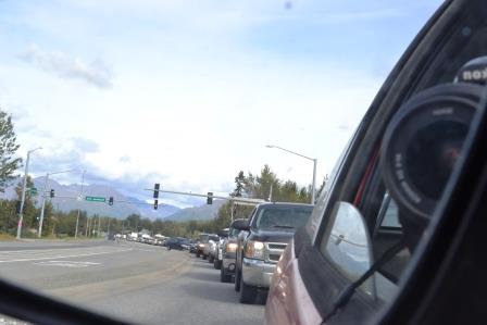 I’m now nearing the Glenn Highway Palmer-Wasilla intersection. On my right, on one side of the highway, is Fred Meyers. Across from it is a Carrs Supermarket. Both have Starbucks Coffee. I could pull in and get a cup of java and dunk my cellphone in it. Could be edible. Don’t know until you’ve tried it.