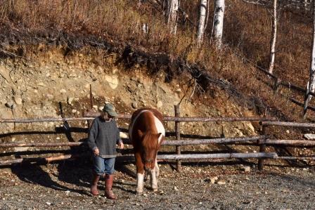 He got upset. I got rattled. I retrieved Hrimmi and Pete stood on a hill and filmed us. Hrimmi would not stand still with her rear feet in the hula hoop. So after a few tries I said that was it for today. Now, that was the best thing I could have done because there was no sense forcing the issue.