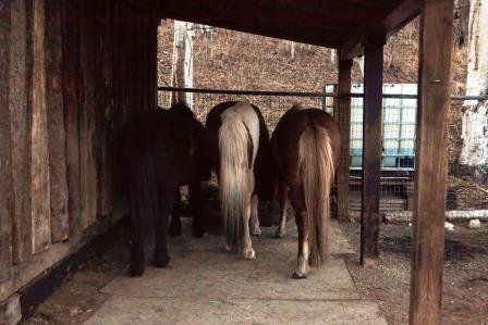 The horses – coming along. Today I spent a half-hour with Raudi, Hrimmi, and Tinni, in the Playground of Higher Learning. Did agility and Intrinzen work with Raudi and Hrimmi. Raudi’s attitude was that I put the halter on me and let’s do some clicker training. She wasn’t up for the autonomous work. So we worked on stepping on a supplement lid with her left foot – she got it – and backing while I stood in place – she got it. Hrimmi’s attitude was I’ll do what you want off lead, for treats. It’s tough because shaping for agility and rewarding autonomous behavior seem to be at odds with one another. For instance, I am working with her on the panther walk, which involves striking and moving forward – and I am working with her on standing on the bucket lid, which involves first stomping on it. How to go about doing these things requires more thought on my part. And Tinni – did some body work, which he enjoyed – must do more.