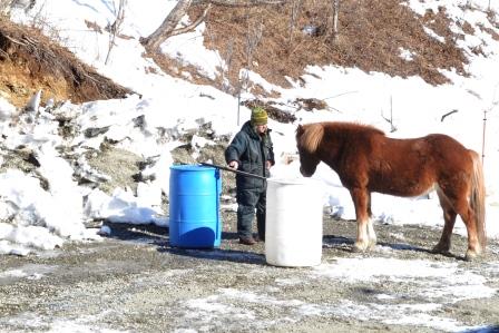 Today is a good example of the above. I first worked with Tyra, doing ground training. She’d regressed some – had resumed mugging me – so we went back to clicker training kindergarten. I began by turning my back to her when she mugged me – now standard procedure – she walked away. Turning my back to the horses has been useful with all the horses when getting hay out of barn. I next put her in the enclosure by herself and used the target stick, focusing on having her first touch it, and then back in order to get her treat. This worked. I also worked with her on standing quietly – otherwise she does not get reinforcement. I did this in the pen, in the driveway, and out on the road. This worked.