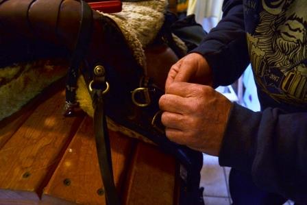 Pete spent a lot of time today, taking apart the saddle and looking at the leathers. He deduced that one was longer than the other. So we evened them up by moving the buckle that holds them in place. He also moved the fender forward because one foot when in the stirrup is cocked to the side; this (we think) has been contributing to my sense that I am off kilter.