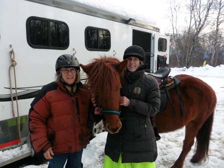 My mind would have continued to go around and around, but the circle was broken by a visit from my friend Sarah who came over and went riding with Pete and me. We did all our trails – Pete rode Raudi, I rode Hrimmi, and Sarah rode Tyra. We left Tinni behind because we just had three riders.