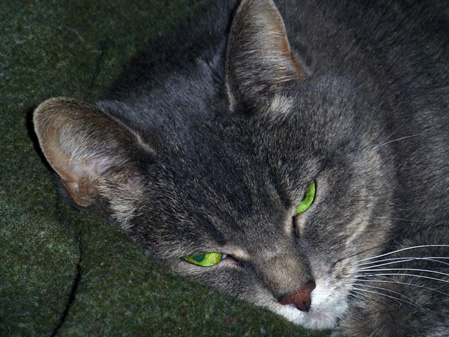 I called my sister Eleanor in Portland, OR this morning. She then gave me the bad news. Gray Baby, her cat, wasn’t doing well. She was not peeing or pooping or drinking and was dehydrated. This, in El’s estimation, meant that it was time to have Gray Baby to be sent on to greener pastures.