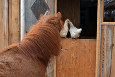 T: They were sitting on the goat pen gate, just minding their own business. You must have let them out.