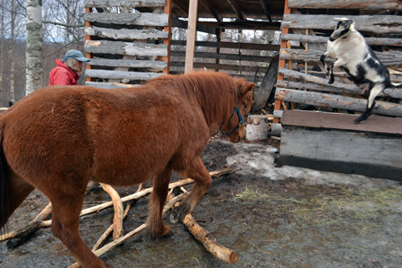 It’s now light until 10 p.m. I’m getting outside later in the day and staying out later. Had time tonight, before dinner, to do agility with all the horses. To get to the pen we have to wade through mud.