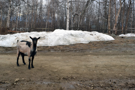 down the hill parallel to our cabin and get to the enclosure in less time. The catch is, I did have to think some about this for a few days. I had to first determine if the snow on the north facing slope would hold me, and if not, just how far I’d sink downward. I was one day able to walk on the crust, then it gave. But in a few days’ time, there was no more crust. The path that I am now taking on a routine basis got more distinctly defined in the past few days.