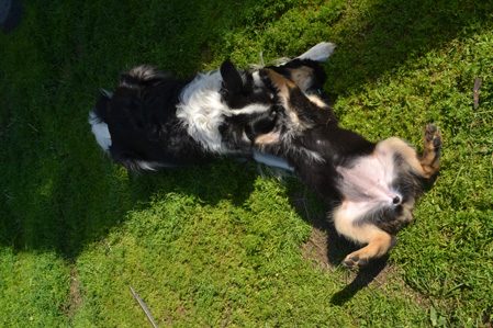 Ryder is becoming increasingly more accepting of Shadow. Tonight they were both outside, racing around the yard. This is what we hoped would happen. It was a gamble in taking on Shadow – you just never know how two dogs in the same household are going to get along. Ryder could easily have turned on Shadow. I suspect that we’d then have forever been playing doggie musical chairs with one in and one out all the time.