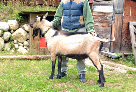All live in the upper quadrant, or what I call the petting zoo. The living is easy, so they don’t feel they have to do their livestock thing. The chickens get feed and the goats get three squares of hay a day. The mice, who are rodents, get a little bit of everything. Every so often one of the chickens will give us an egg. (They don’t lay eggs; they give us eggs.) As for the goats, Stormy hasn’t given us any milk in the last few years. We borrowed Buckwheat, with the expectation that he would breed with Stormy, after, we’d then have milk.
