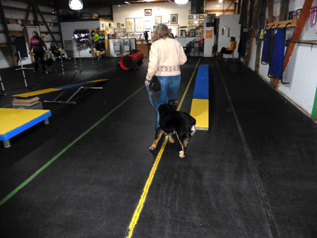 Alys and Shadow in the agility room