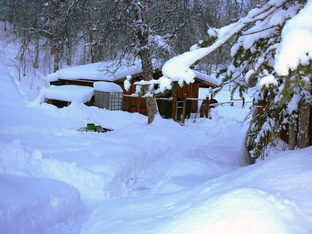 Few who profess to live around here have stuck around this winter. Alas, our motorhead neighbors have appeared with snowmobiles in tow. However, they have not stayed here. And down on the corner, our neighbors seem to be toughing it out; although their wood pile (a load of green logs, delivered in November) is buried under a few feet of snow.