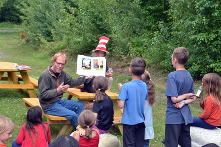 Pat reading to kids at Sutton Library