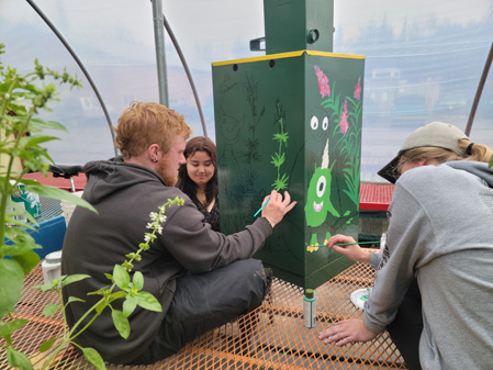So, with hat in hand, I went where no outreach coordinator has gone before. I asked Becky, and she agreed that I could put a newspaper box in the Eckert Garden. She said that her crew would paint it. I next asked the ASF exhibit and vendor coordinator if I could put the box in the garden, noting that Becky was for it. She said that would be fine. Pete, dear soul, he did schlepp it over there.