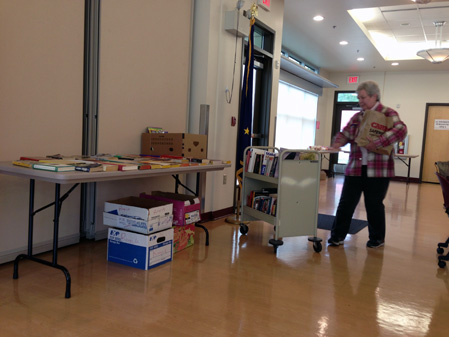 My next stop was the Meeting House where I met up with my friend Bea Adler. We stood in the rain for the longest time, our vehicles side-by-side, swapping stories and examining books. Bea said that, yes, in the near future she might be a guest sorter at VCRS.