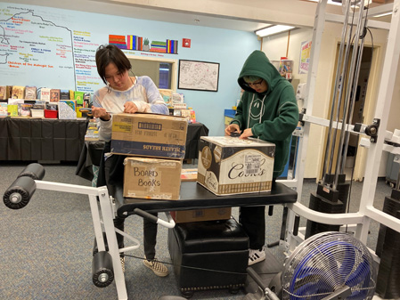 We followed Jeff and teacher Pamella Simpson into the main classroom. There, spread out on tables, were the BLBP children and young adult books that were donated to us by the Anchorage School District.