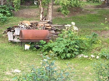 I had no idea as to what happened. I figured it might be a bug bite, or perhaps my dental issue had caused the problem. Pete was the one who figured it out, or at least figured out to our satisfaction. This was that yesterday I picked up some cow parsnip that Pete had cut and set outside when he was gardening. I think I put it on the compost heap. But it does make sense – the stuff is caustic.