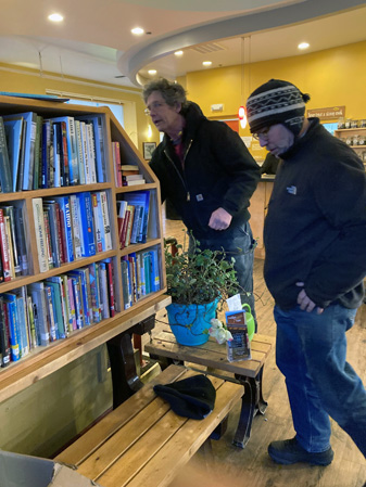 I did more distribution after we parted company – then met up with Bill, Pete, and my new friend Timothy. Bill and filled the new bookcase that he built for Turkey Red. The old bookcase will go to Iditawash.