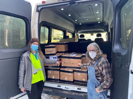 TOTE, the company Milena works for, needs the warehouse where she’s storing the books, so she’s working hard to part them out. Hence, the giveaway at the Alaska Airlines Center.