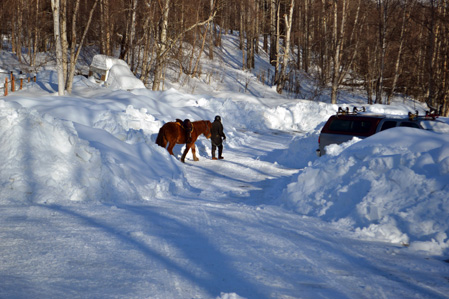 T: Well Mr. and Mrs. Magpie were here a short while ago, picking up lose hair at the hitching area.