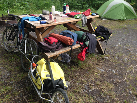 And I do have everything. For example, I have my metal cup. I have a Smokey the Bear lunchbox. I live in a neighborhood that’s relatively quiet. I have clothes I feel comfortable in. I have a relatively new vehicle that tells me when I need a rest. I have three horses, two goats, two dogs, three chickens. And all are really good animals. I have access to trails that are near my house, so I don’t have to trailer someplace else to ride. I have Pete, who has always been supportive of whatever project it is that I’m involved with at the time. I have bicycles and kayaks. I have a book shop and enough reading material to last me several lifetimes.