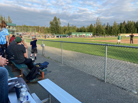 The Mat-Su Miners lost to the Glacier pilots, 4-1. One guy hit the ball over the adjacent fence and made a home run. This was very impressive.