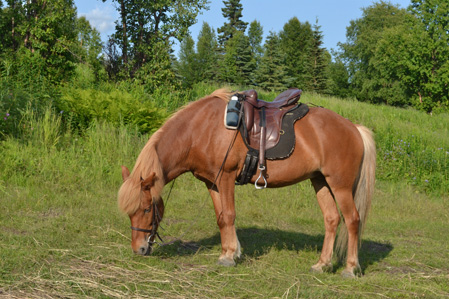I may have learned a valuable lesson here, and this is that I do need to spend more time with all three mares, this including Raudi. So I got all three out for a ride today. It was raining when I got Hrimfara out – but I’ve decided that rain or shine, I’m going to keep riding. It was overcast when I rode Tyra. And it was almost sunny tonight when I rode Raudi.