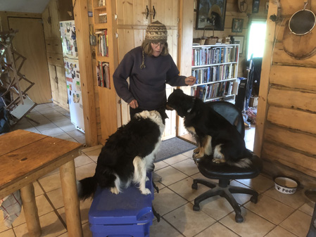 I kept the session with the goats really short, then brought the dogs down to the arena. I had planned on tying up either Shadow or Ryder but decided to instead do double dog agility, meaning that I worked with them both simultaneously.