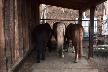 Over time, I began in certain instances to think things out and explore more options. For example, rather than getting bent out of shape when they get into the enclosure hay barn closet, I instead give them a few minutes to graze before going to one of the three and gently asking them to back.