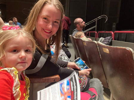 I finished promptly at 11:05 a.m. got in my car and drove to the Park and Ride site on trunk road, and there I met Melina. She, her daughter Siersha, age 3, and I drove to Anchorage under partially sunny skies, and arrived at the Discovery Theatre at our scheduled time. We met up there with Lainie, who had a crew with a handcart, ready to take our books. I’d put them in bins yesterday. Lainie and her staff set up our book display, and soon the kids and parents started rolling in.