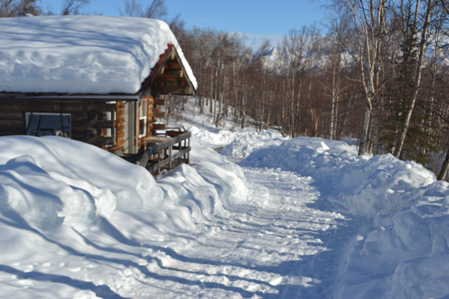 I wrote her back, and in my message leapt into story-telling mode, telling her about Raudi’s behavior yesterday and Raudi’s behavior today. Yesterday she was pissy about the prospect of being examined and having her teeth floated. Today she was a most amazing riding horse. We went up and down Murphy, doing walk-trot transitions then on the final uphill stretch, walk-trot-canter transitions. And she held still when a grouse hen appeared on a roadside snow berm.